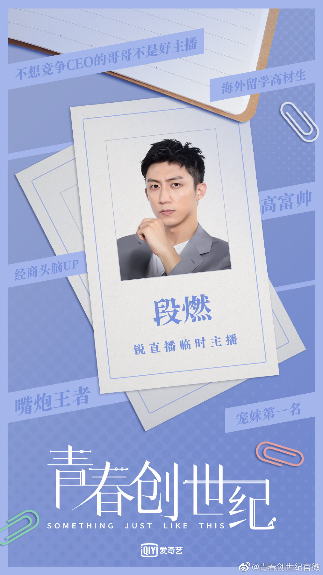 소매업 거물의 아들, 해외에서 유학한 수재, 비록 금수저를 물고 태어났지만 무일푼으로 시작하기로 선택해 강건한 포부로 자신의 세상을 만들어낸다. 잠시 사업의 위기를 겪는다. 날카로운 상업 안목으로 라이브 방송 업계가 다음 트렌드일 거라 확신해 첸시시가 속해 있는 위기의 라이브 방송 회사를 인수한다.