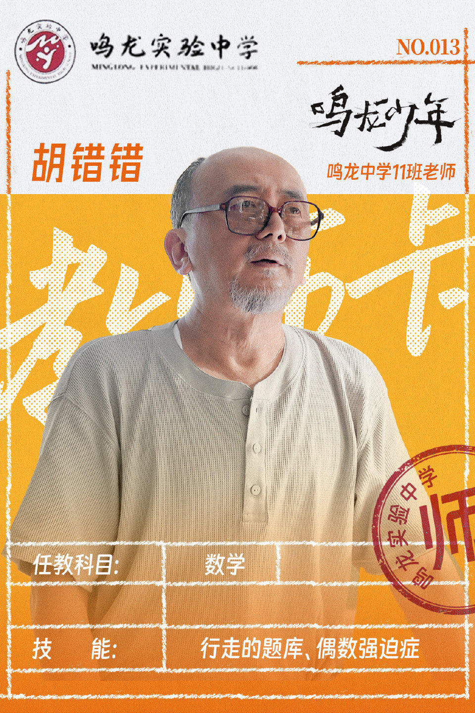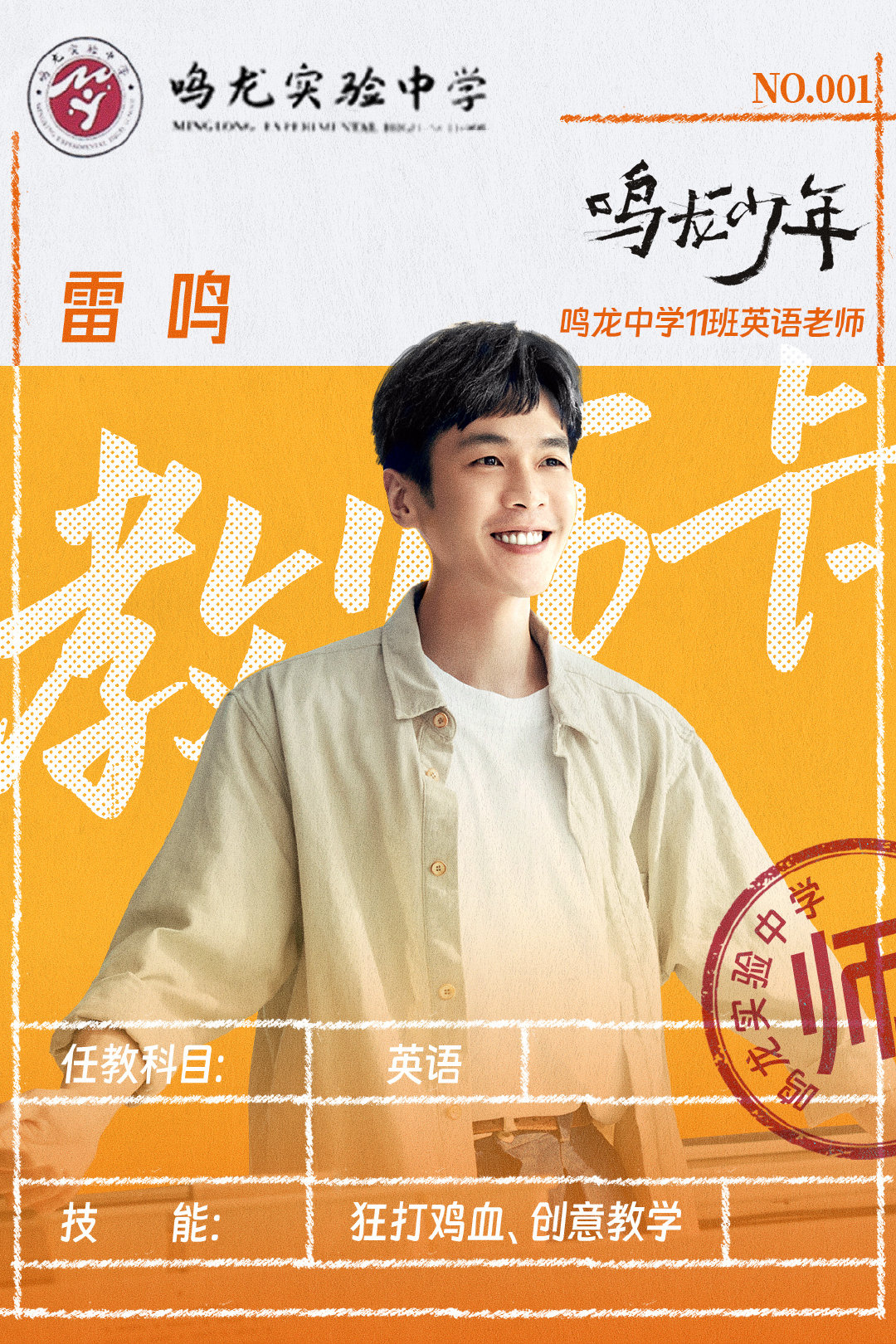 훈련학교 우수 교사였던 그는 여러 실패 후 빚을 갚아 아버지의 병을 치료하기 위해 '밍롱교육그룹'의 인재 영입 계획을 통해 밍롱실험학교 고3 시범반인 11반의 영어 교사가 된다. 처음에 그는 절대로 학생들과 친구가 되지 않으며 좋은 성적만 얻게 해주면 되고 사람이 되는 것은 가르칠 필요가 없다고 생각했다. 하지만 나중에 그는 상샤를 만나게 되면서 두 사람의 생각은 미묘하게 변하고 어우러지게 된다.