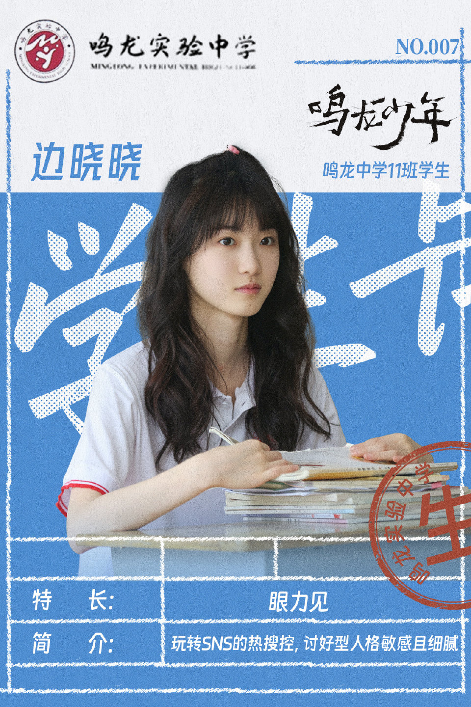 밍롱학교 고3 11반 학생. 학업에 별로 신경 쓰지 않는다. 인기 왕홍이 되는 것이 꿈이다. 부모님은 도시에 돈을 벌러 나가 고모집에서 살고 있다. 이 집에서 계속 지낼 수 있도록 그녀는 착하고 철든 모습을 보여준다. 학교에서도 친구들의 비위를 맞춰주는 전형적인 '비위 맞추기형 스타일'이다.
