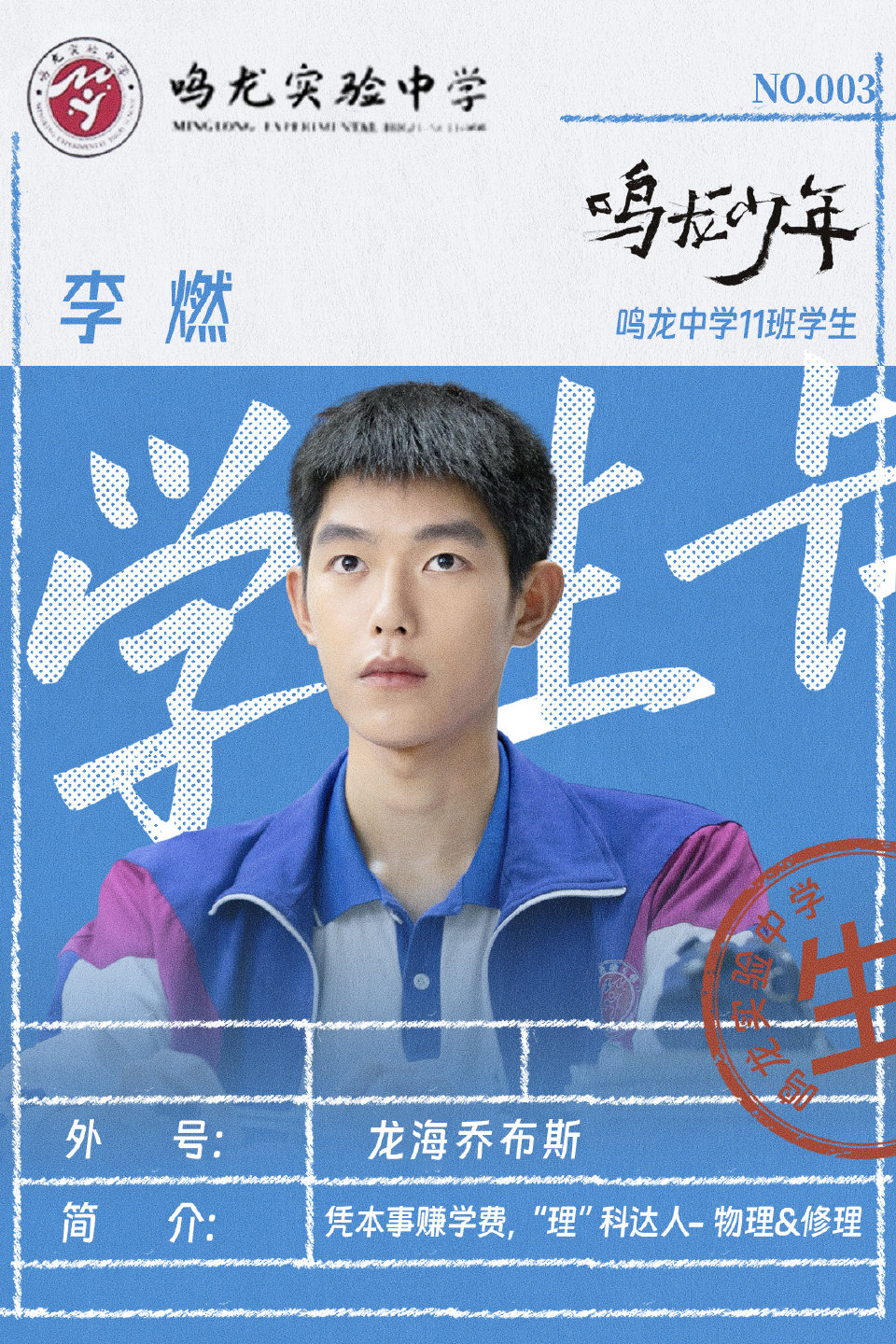 롱하이의 스티브잡스가 그의 별명이다. 밍롱학교 고3 11반. 목표가 명확하고 물리 성적이 우수하다. 빈곤한 가정 형편은 할머니가 편하게 사실 수 있도록 그가 더 빨리 돈을 벌고 싶어하게 만든다. 그러나 아버지가 돌아가셨을 때 냉담했던 친척들, 유년시절에 그를 버렸던 어머니는 그가 이 세상과 가까워질 수 없게 만들었다. 효심 가득한 그는 할머니의 치료를 위해 장학금을 얻고 핸드폰을 수리하는 일로 생활비를 번다. 판자촌이 철거되면서 리란과 할머니는 션야오의 집에서 살게 된다.